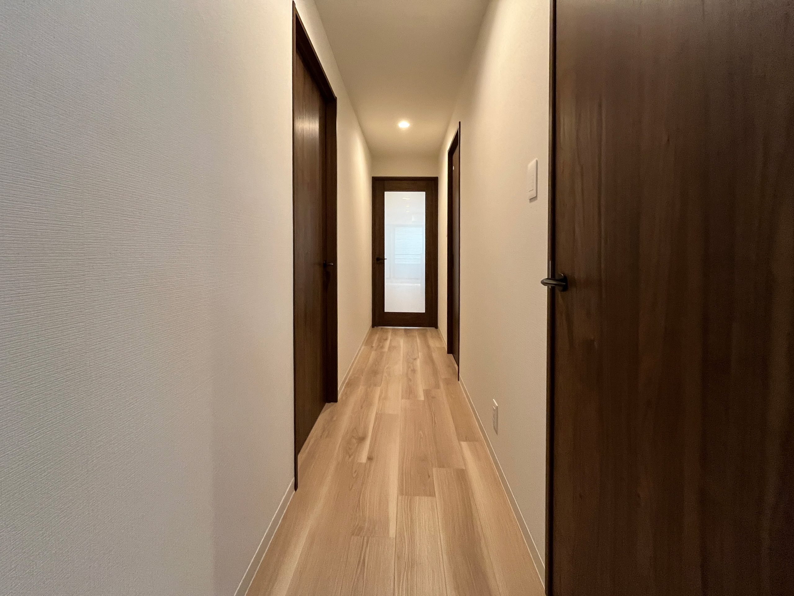 外壁と調和する内装デザイン。 温もりのあるレトロモダン空間。