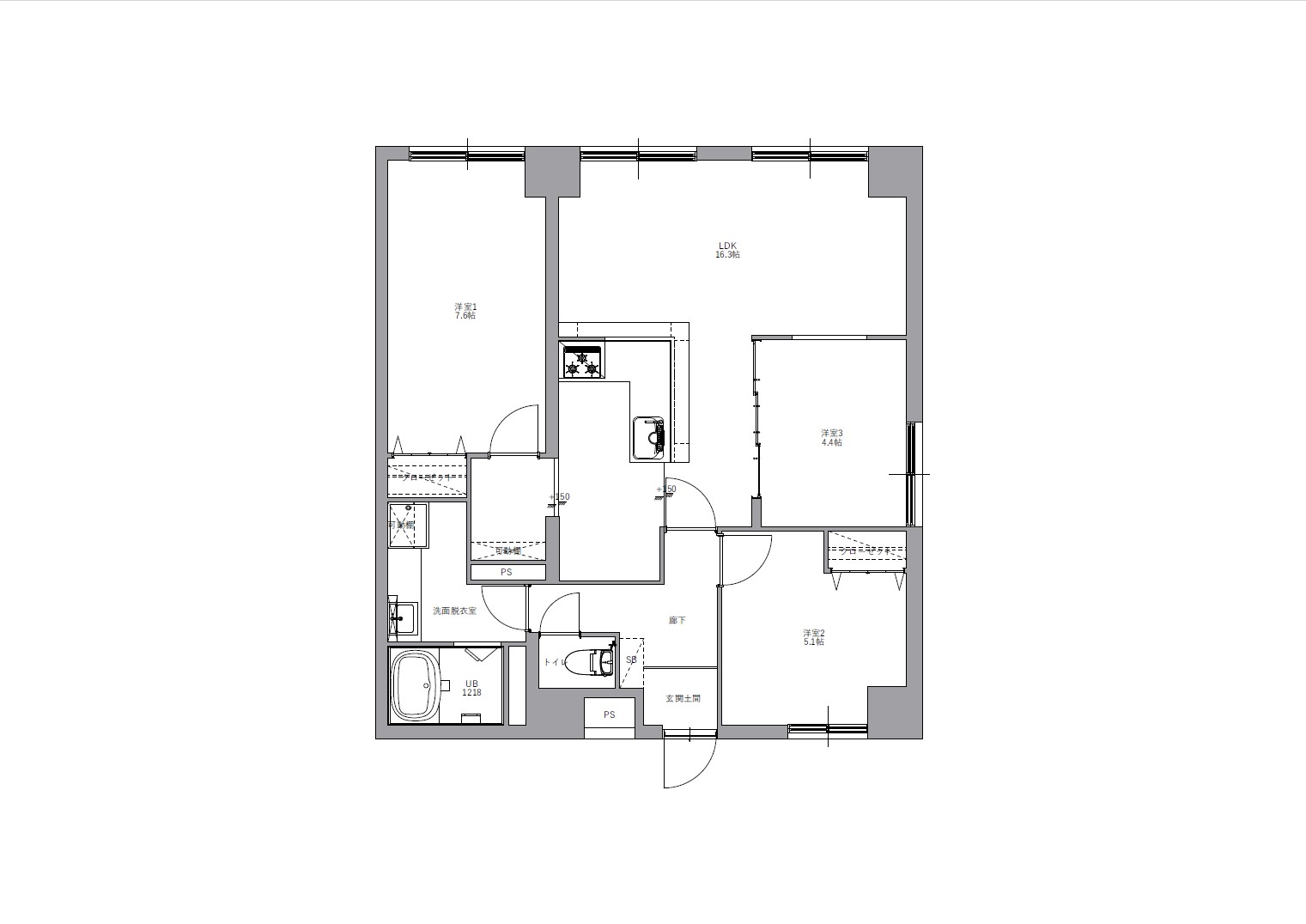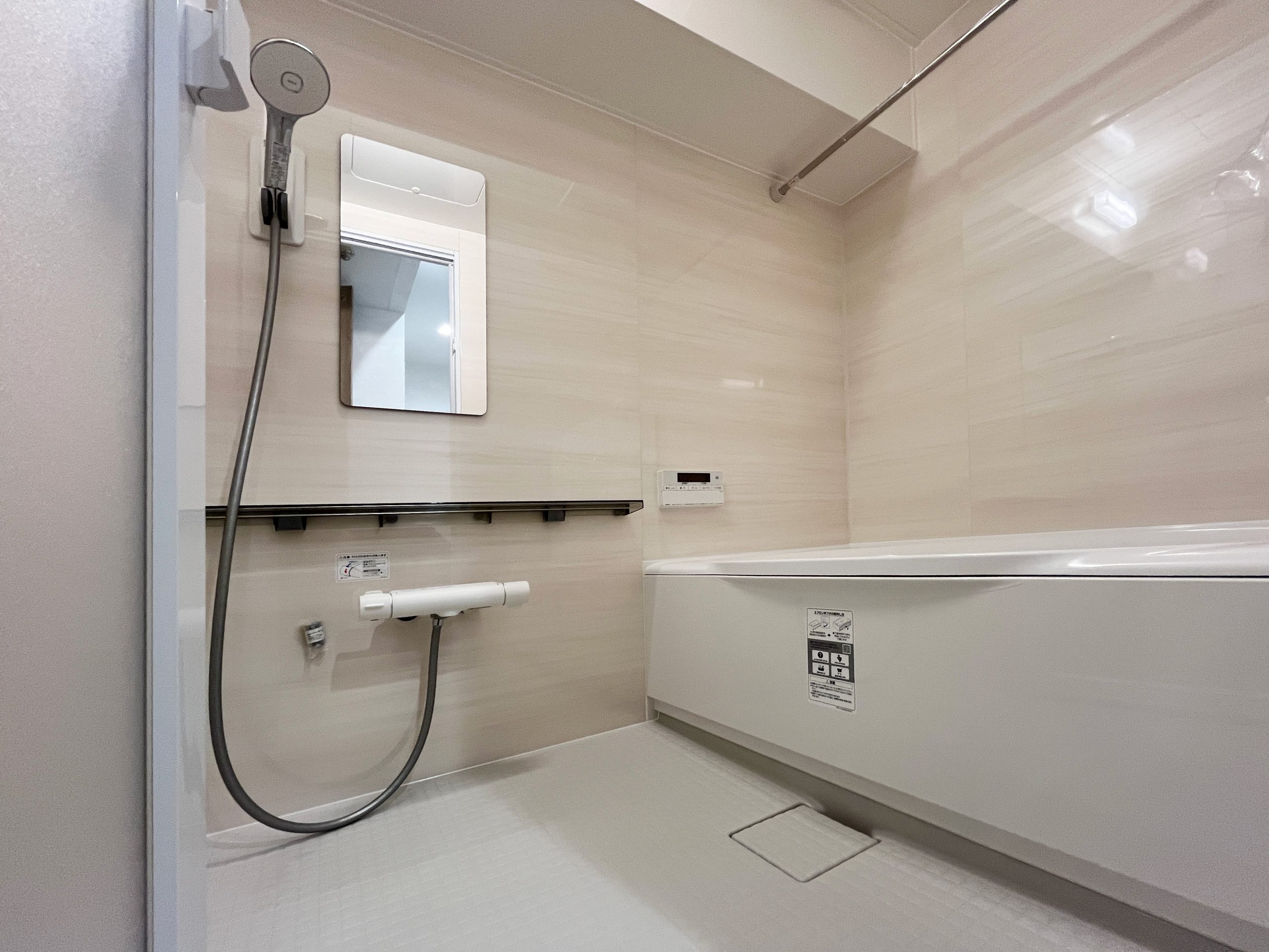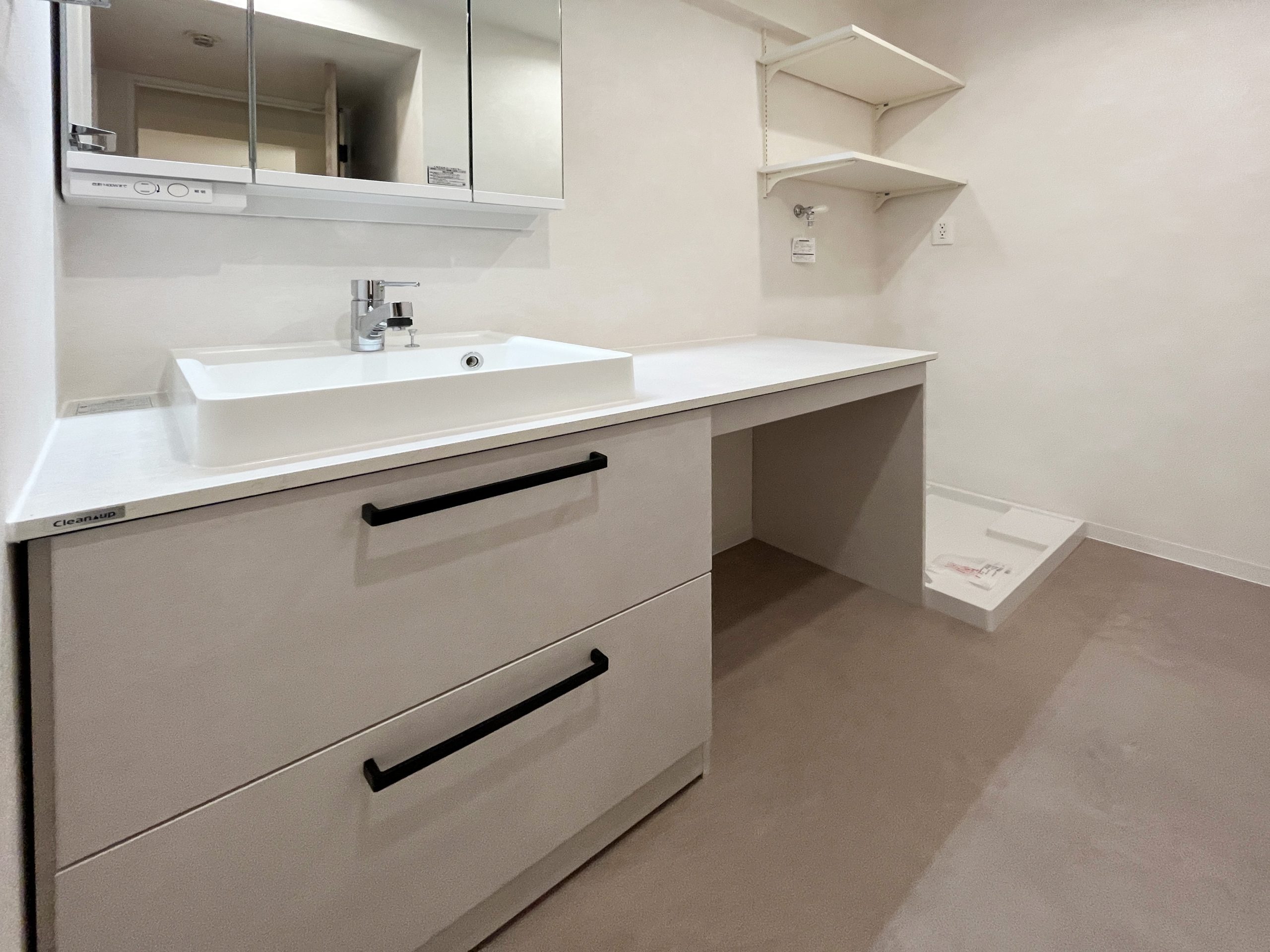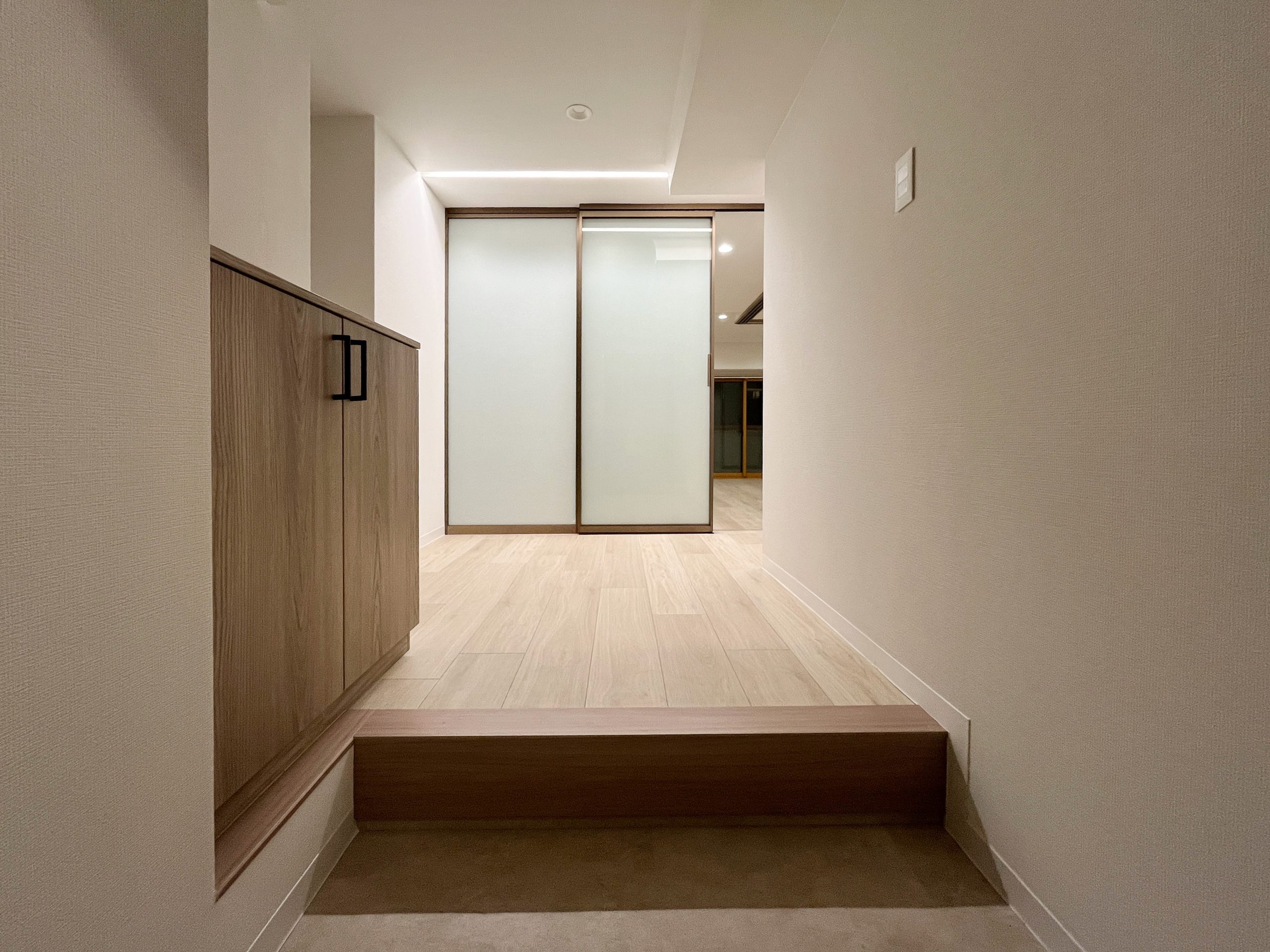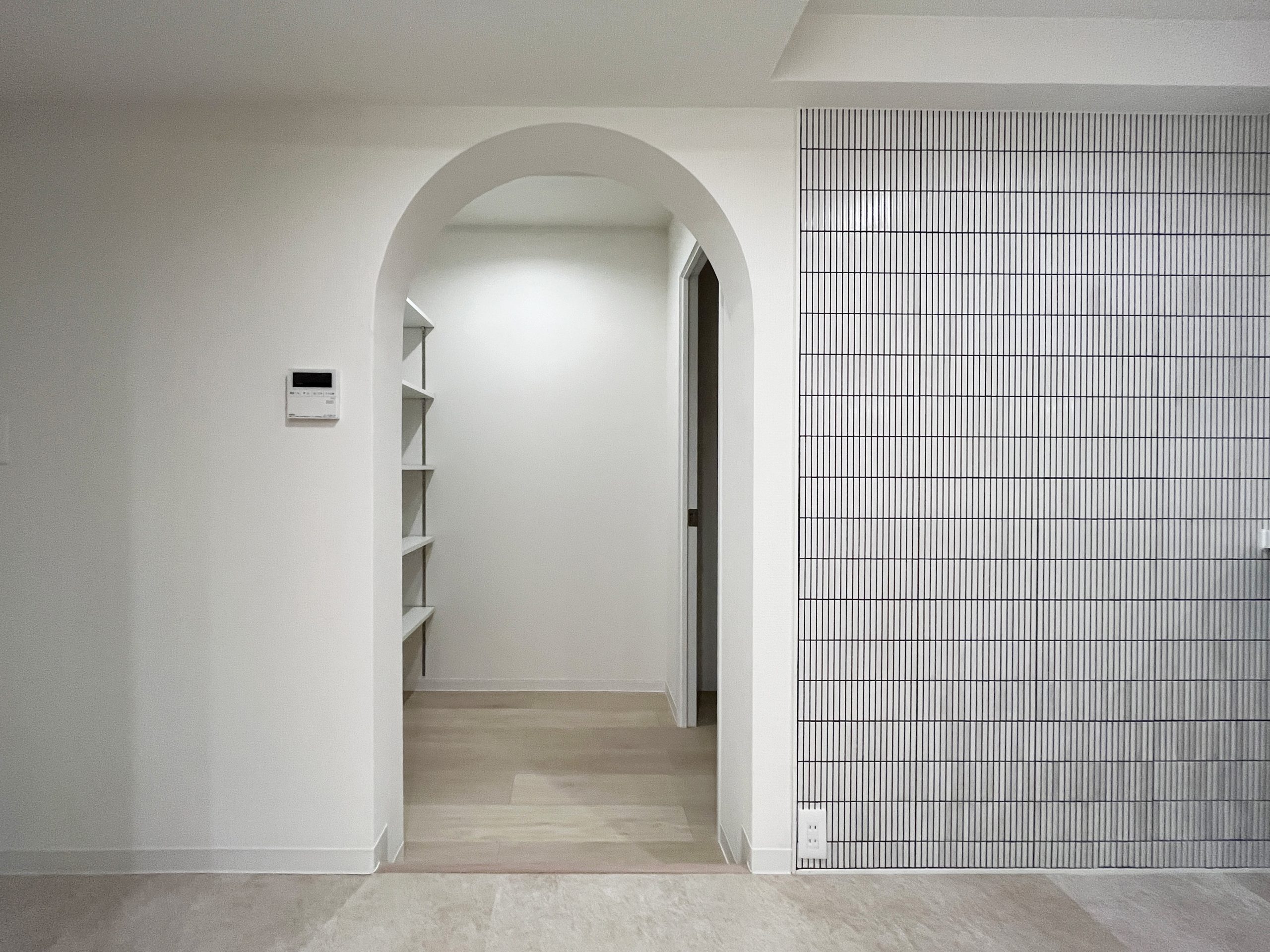 内装はベージュを基調としたお部屋をご用意。ベージュとグレーの絶妙なバランスが落ち着きのある雰囲気を演出し、居心地のよい空間を生み出します。大きなL型のカウンターキッチンにリノベーションを行い、お料理好きな人も住みたいと思っていただけるお部屋となりました。またLDK横の洋室には室内窓とスクリーンウォールを採用。LDKと洋室を物理的に仕切りながらも、ふと視線の先に家族の気配ややわらかな光が感じられる、つながりのある穏やかな空間となります。