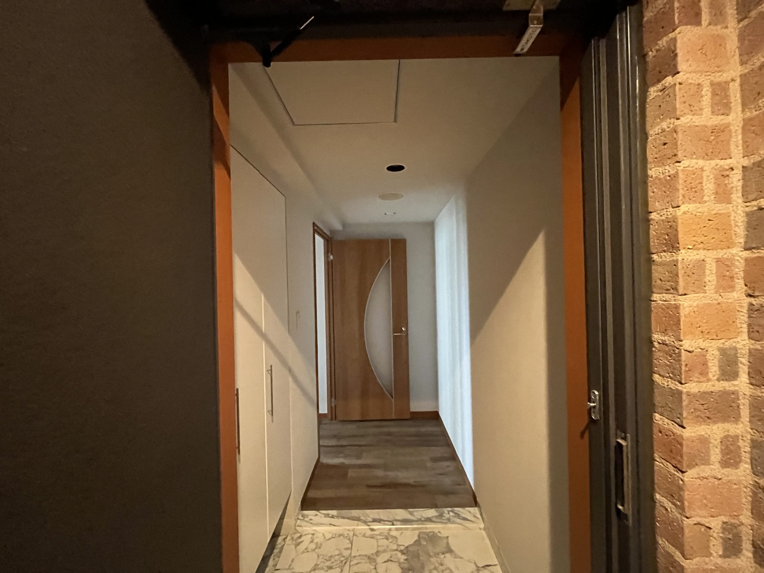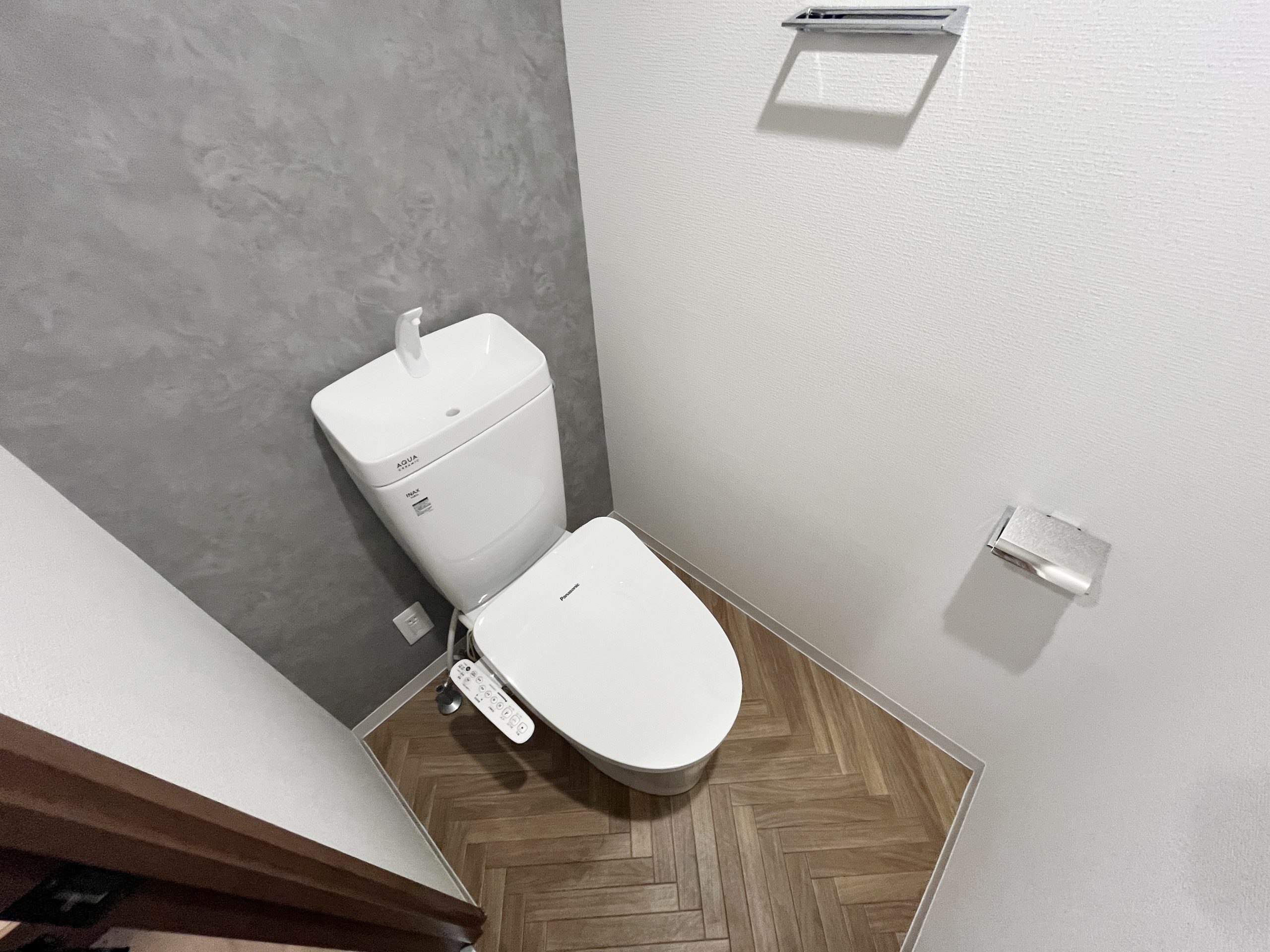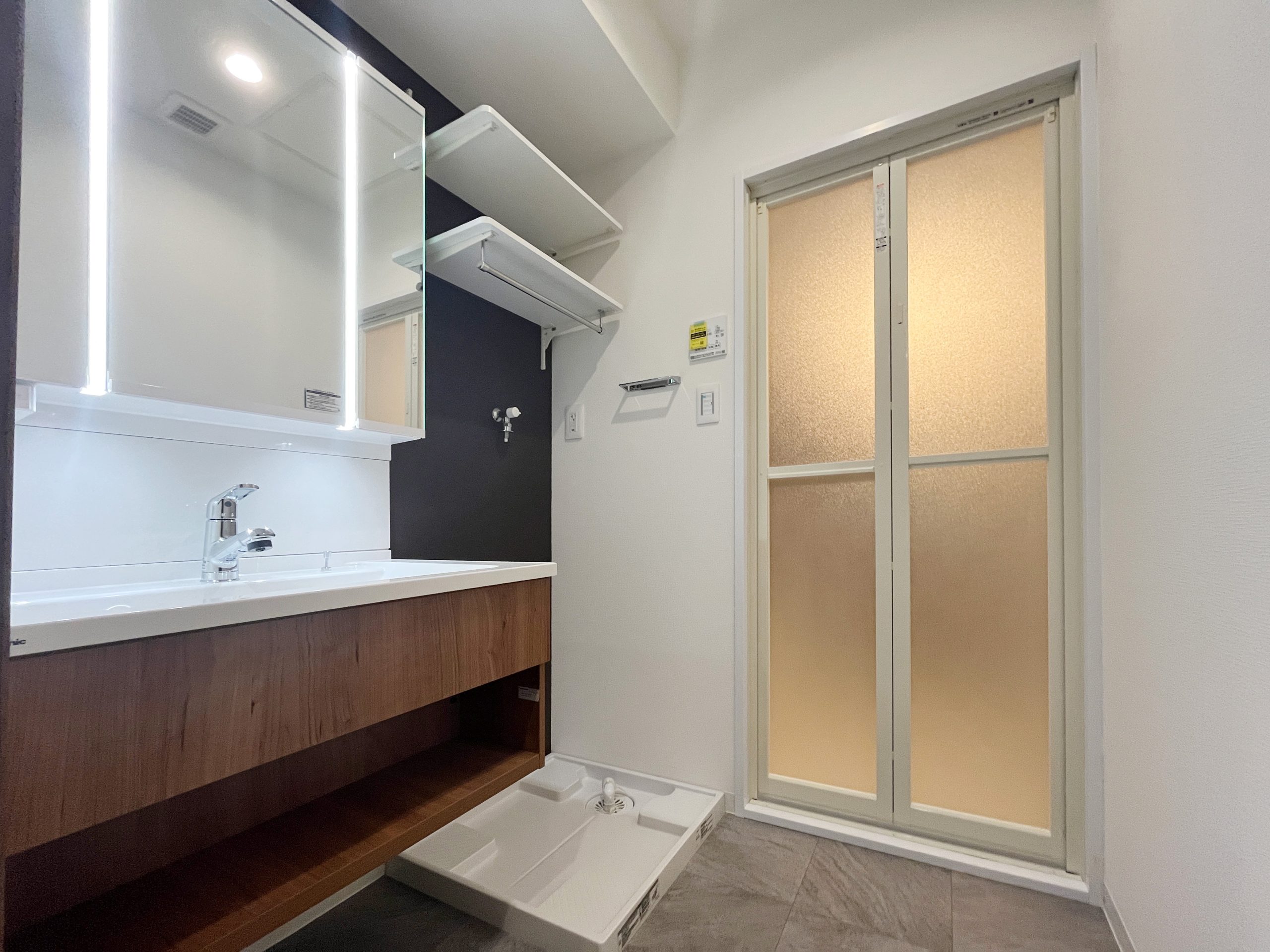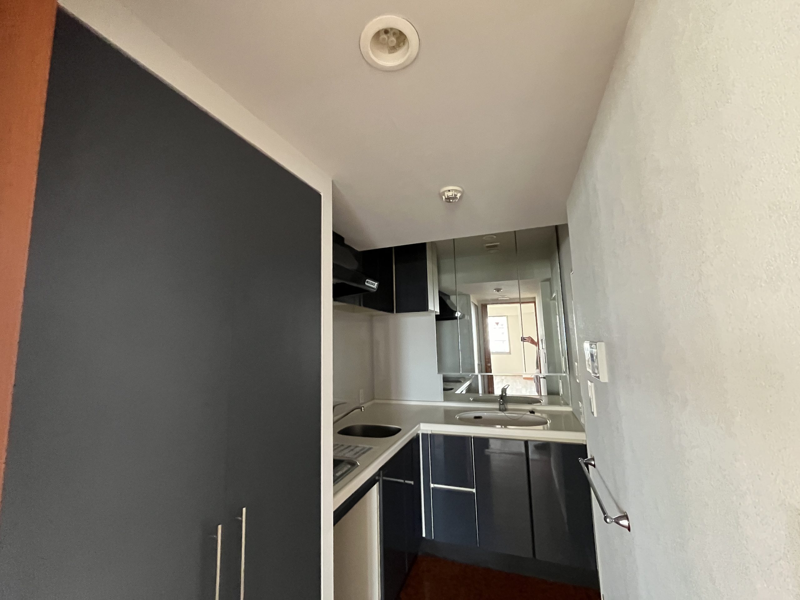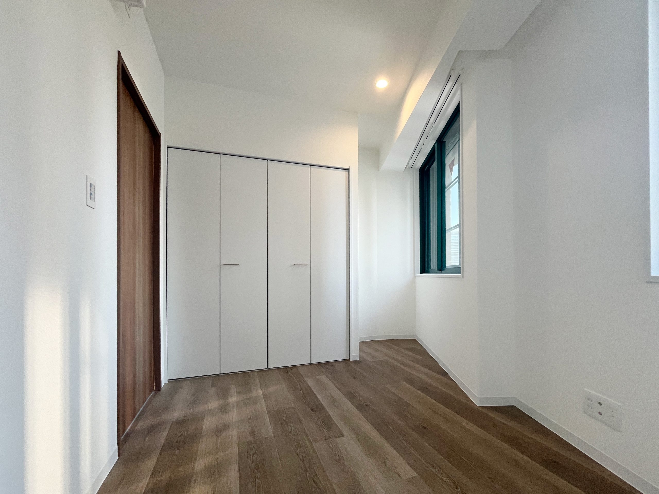 SOHO利用を前提とした1Kを、暮らしやすさとデザイン性を兼ね備えた2LDKへと一新しました。シャワーブースしかなかった水回りはユニットバスを新設し、独立した使いやすい空間へ。キッチン背面のパントリーや、LDKの収納、各居室のクローゼットにより、日々の暮らしをすっきり整えられます。 書斎には、L字型カウンターデスクを設置。リモートワークにも趣味の作業にも心地よく対応でき、ペンダントライトの光が空間をおしゃれに演出します。さらに広い壁面にはアクセントクロスと間接照明を組み合わせ、陰影が映える上質な雰囲気をプラス。パントリーや書斎の入り口にはアールを取り入れ、柔らかな表情と洗練さを合わせ持つ住まいへと生まれ変わりました。