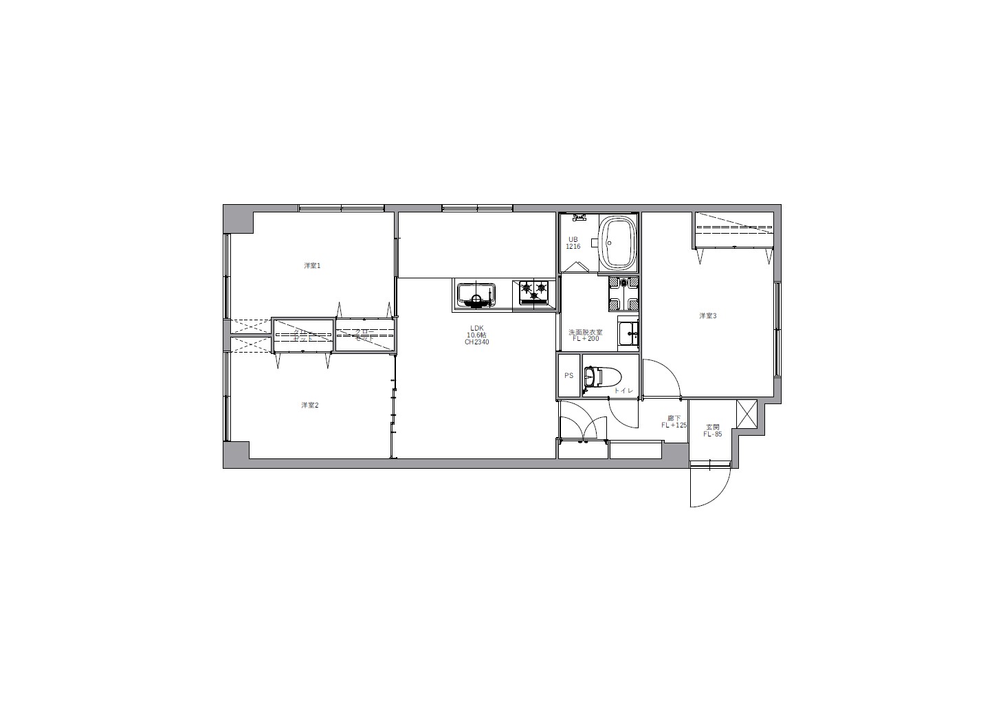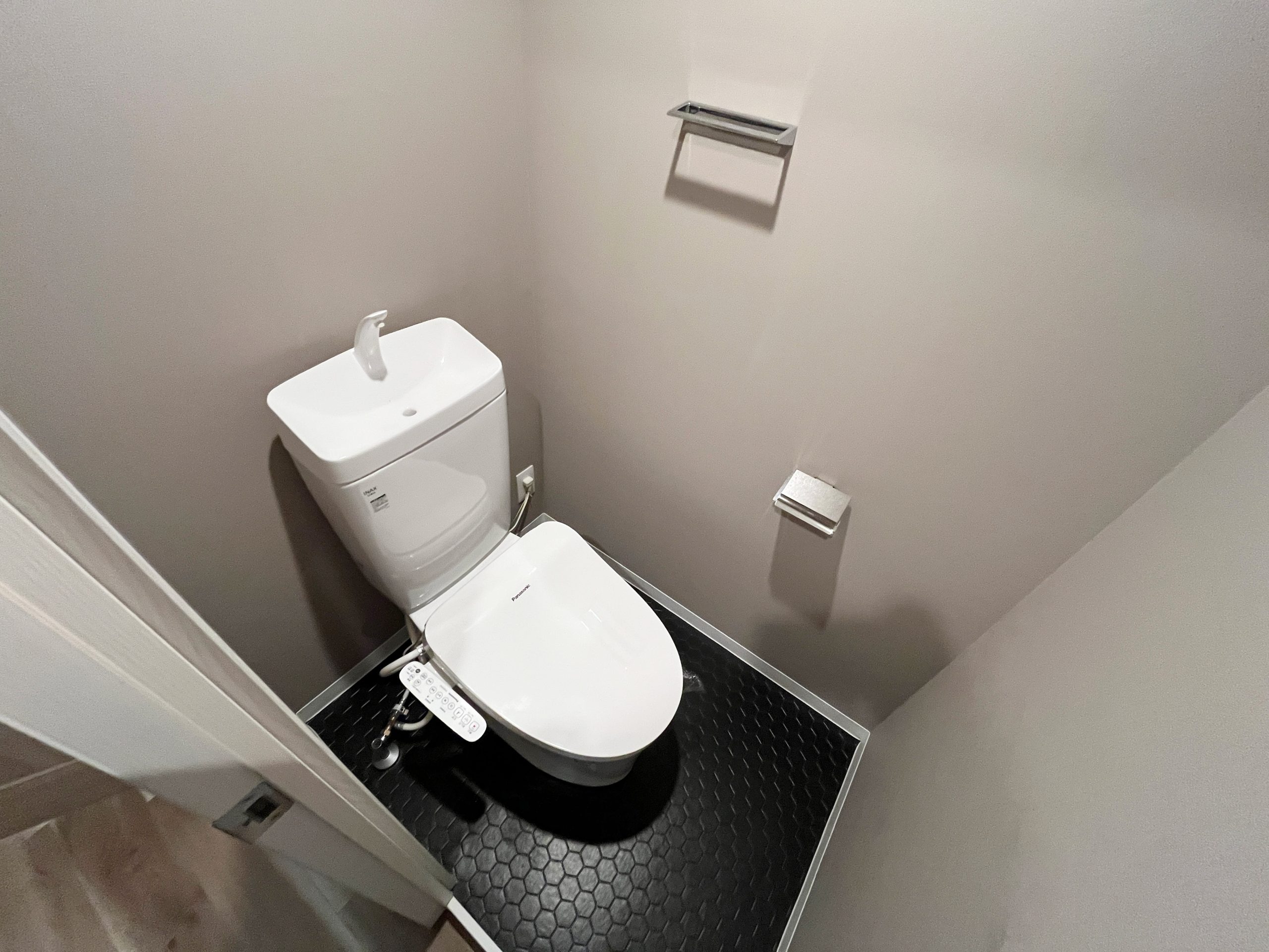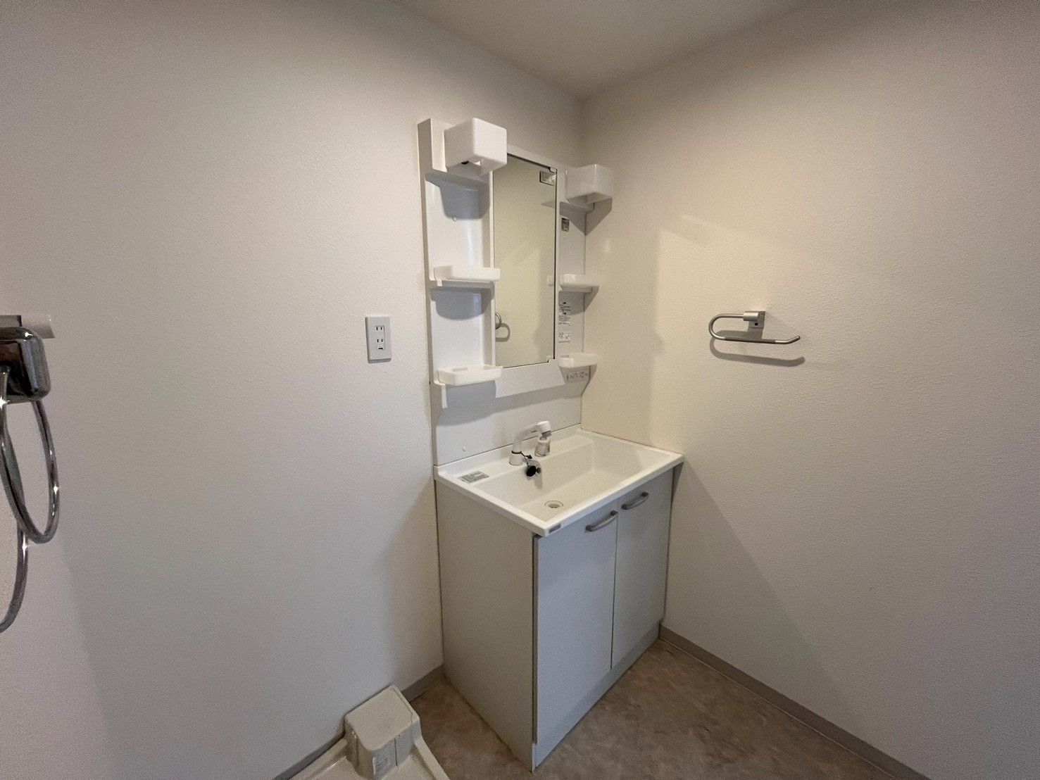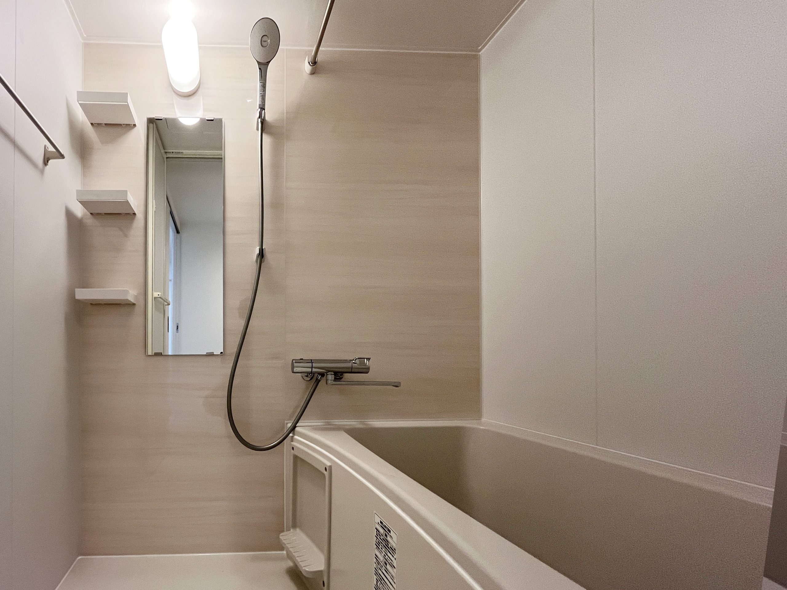 このお部屋の特徴はなんといってもアーチ壁。玄関入ってすぐの廊下とパントリーの入り口にアーチ壁を設けました。現在収納として使用されている廊下部分にアーチ壁のニッチを作成。棚板を取り付けるため収納力は落とさず、デザイン性をプラスしました。部屋を訪れた人が必ず通る場所にデザイン性のあるニッチを取り入れることで、そこに住む人の個性を飾ることができます。 LDKの一角にもアーチ壁を導入。建具で仕切るのではなく、曲線の壁で仕切ることで、空間を広く、開放的に見せる効果をもたらします。その他キッチンの腰壁や洗面台には特徴的なタイルを選択。シンプルながらもタイルやアーチ壁がこのお部屋にしかない個性を生み出します。